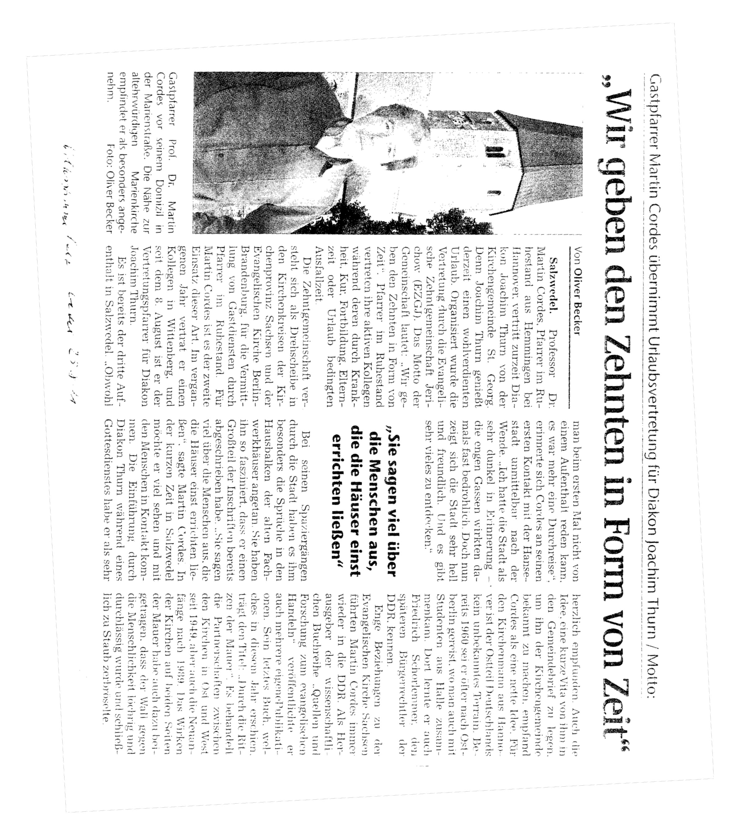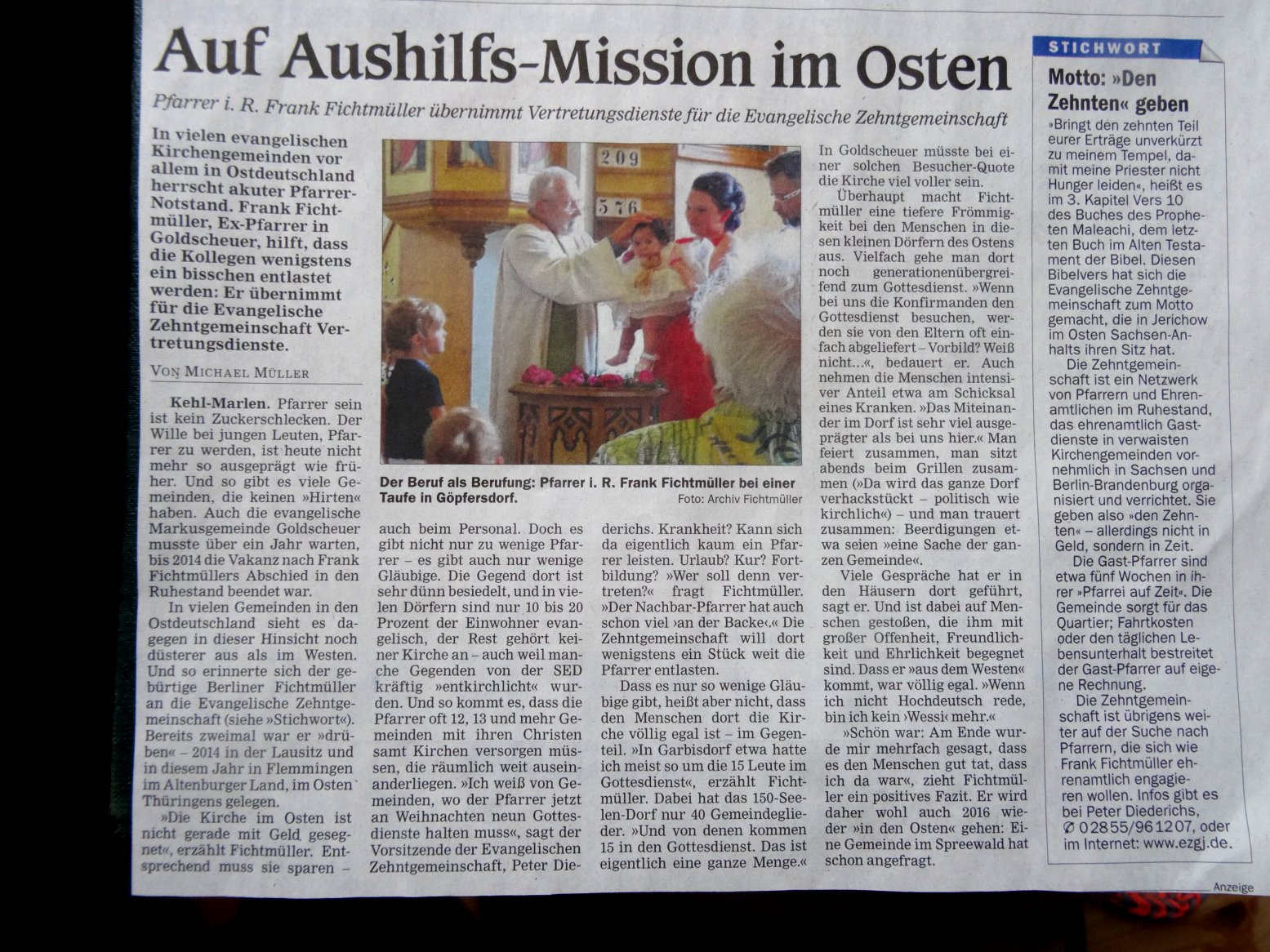 Pastor Klein hilft aus“ in Harzer Volksstimme vom 31.07.2015